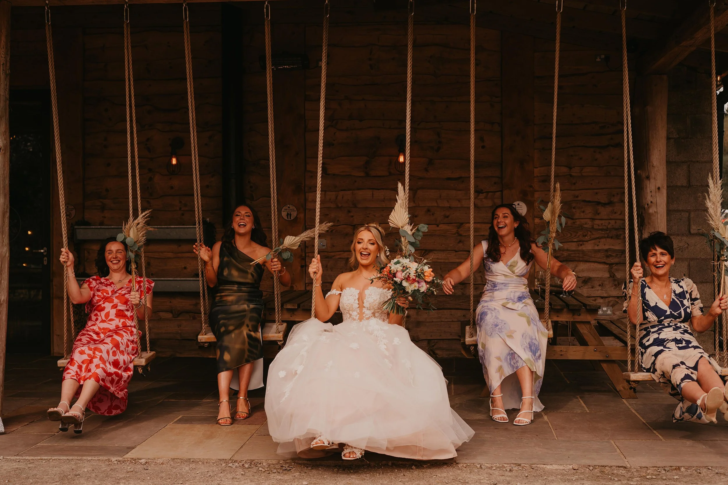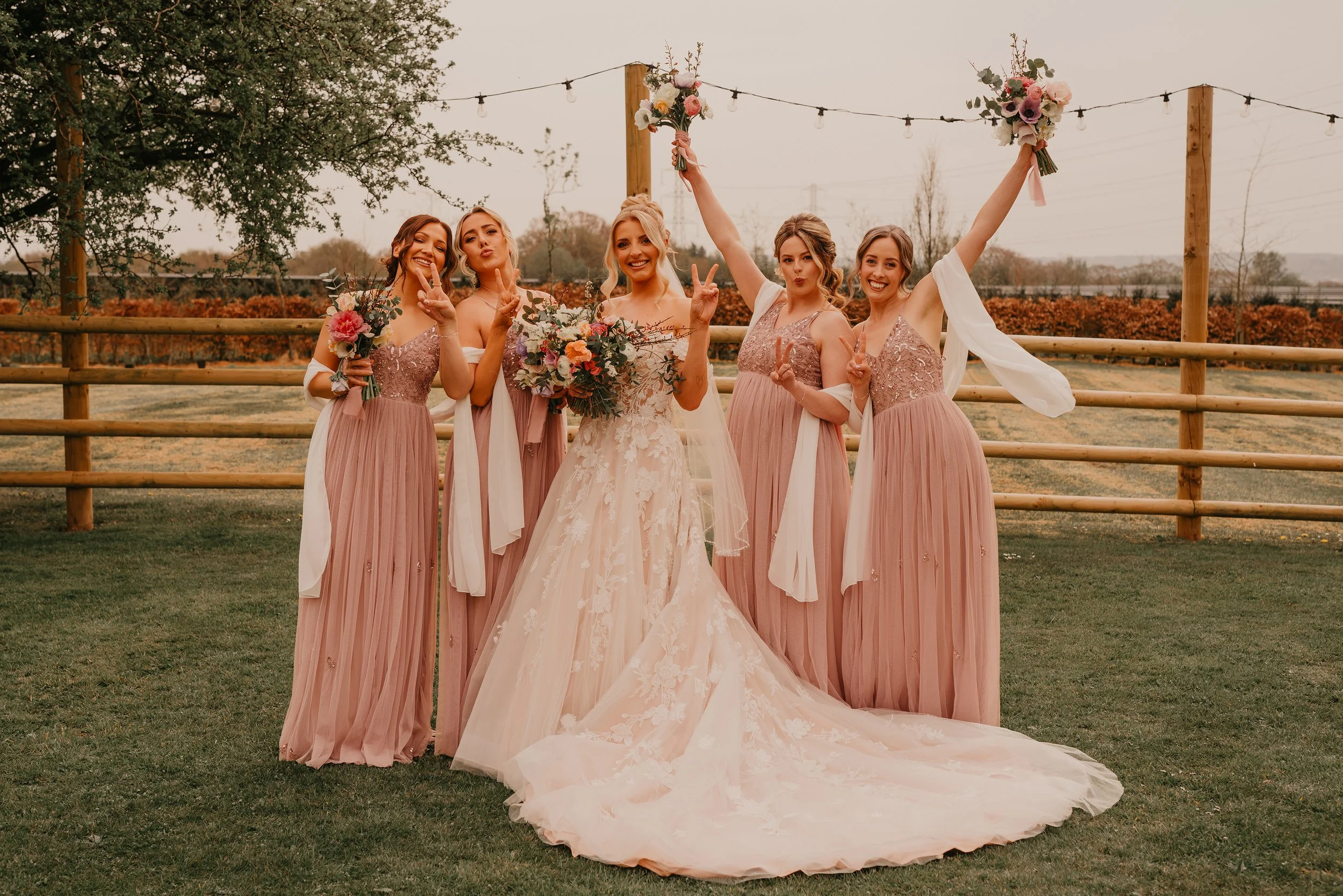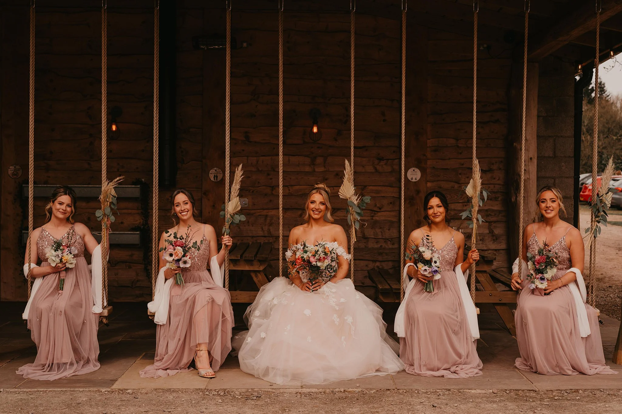 Spring set the perfect scene for Joe and Lucy’s beautiful wedding here at our exclusive countryside barn. With greenery beginning to bloom across the surrounding fields, the couple embraced the season completely, designing and creating their own stunning spring-bloom themed décor which filled the barn with colour, joy and a wonderfully personal touch. From handmade floral details to thoughtful styling (our fave being the high heel garage!) throughout the space, every element reflected their vision. The couple had spent a year gathering beautiful vintage glass bud vases from charity and antique shops, the end result of scattered bud vases was spectacular! In this blog, we catch up with bride Lucy to talk about the planning behind their big day, the inspiration for their décor, and some of the special moments that made their celebration truly unforgettable.