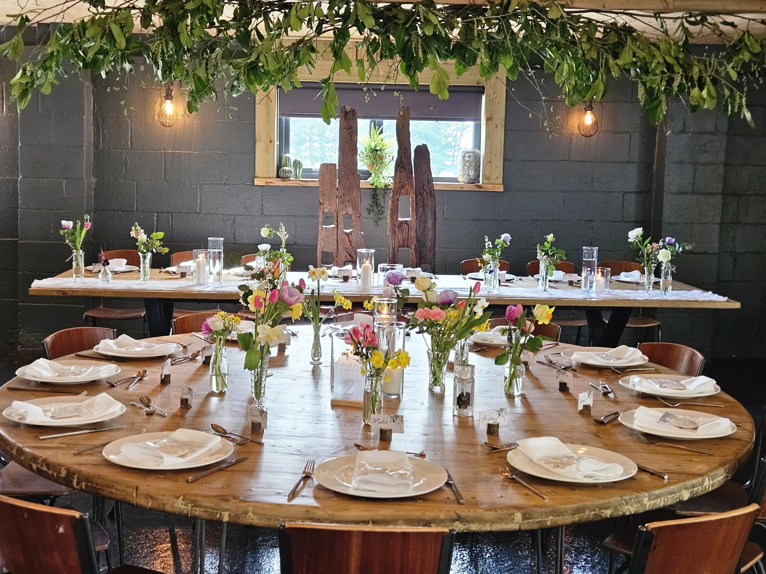 Our inspiration came from the idea of a spring wedding. We wanted the look to reflect the natural beauty of the barn, so we went for lots of greens and pops of colour that brought the venue to life while still feeling fresh and romantic.
